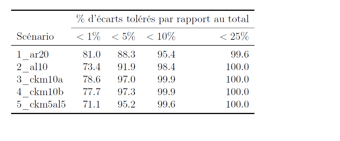 Figure 8: Pour une variable à 5 modalités, les CKM génèrent moins d’écarts à l’additivité