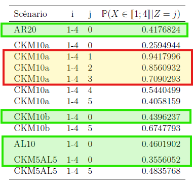 | 2 ou plus | [0 ; 0,06[ | [0,06 ; 0,31[ | [0,31 ; 0,69[ | [0,69 ; 0,94[ | [0,94 ; 1[ |